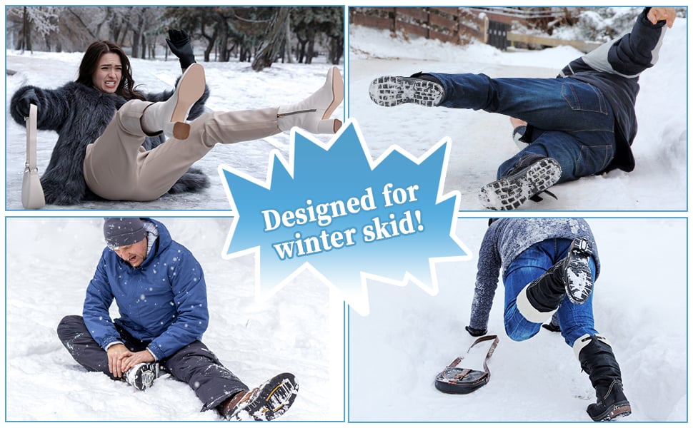 Various Uses And Unisex: Suitable for men and women of any age, including teenagers, adults, and the elderly. They are used for angled terrain, icy roads, icy driveways, muddy and wet grass, dangerous trails, etc.